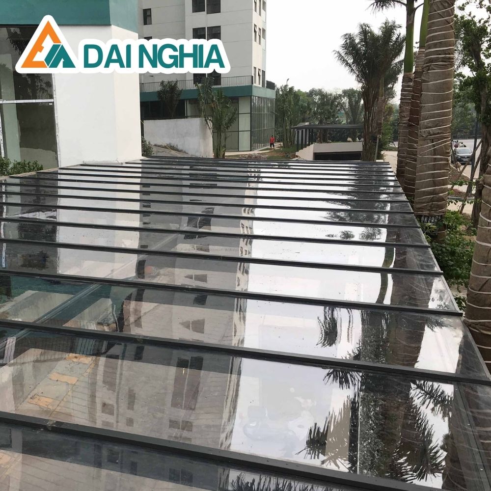 Công ty Đại Nghĩa cung cấp dòng vật liệu Polycarbonate đặc ruột được sản xuất theo công nghệ Thái Lan với thời gian bảo hành 5 năm nhà sản xuất. Vật liệu Poly màu trắng trong là một lựa chọn tối ưu cho những công trình cần lấy sáng tốt, tận dụng ánh sáng mặt trời, hỗ trợ che mưa, chắn nắng, giảm nhiệt nhẹ và tiếng ồn trong khu vực.
